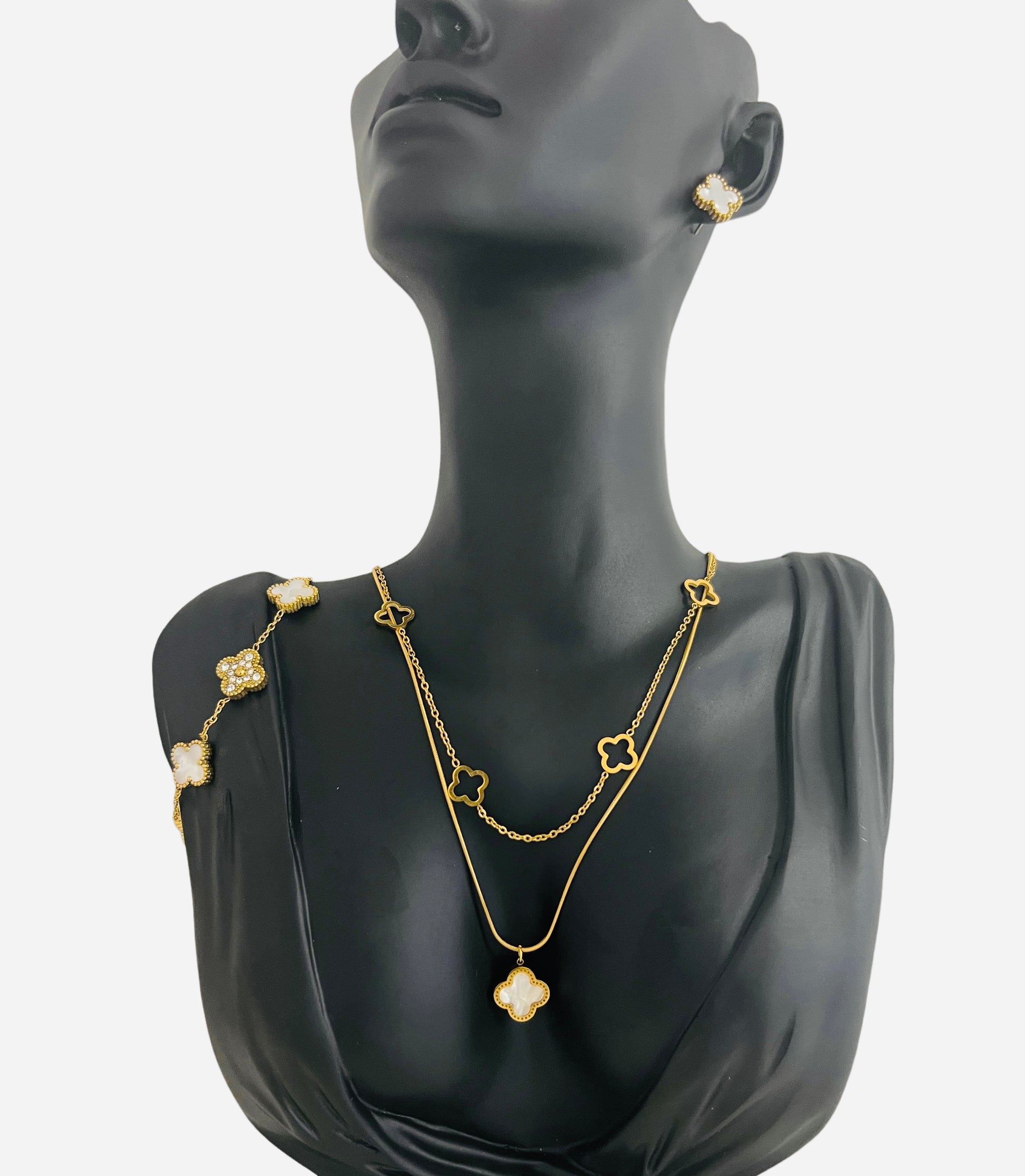 Ensemble de 3 pièces en acier inoxydable comprenant : le collier , le bracelet et les boucles d’oreilles.