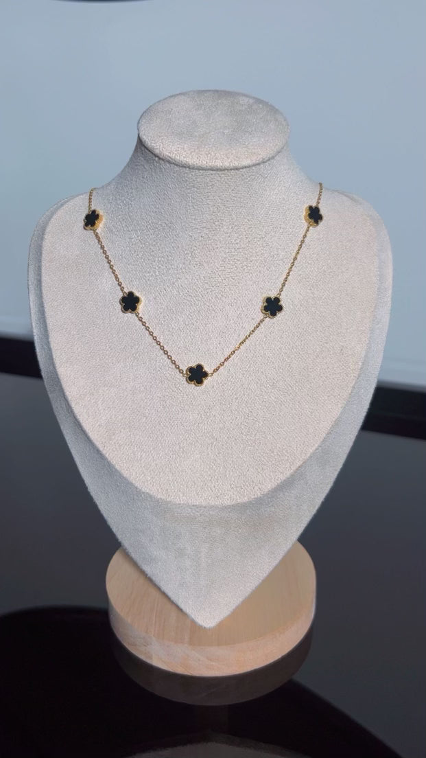 Un collier doré délicat, orné de trèfles noirs, pour une allure chic et contrastée 🖤✨.